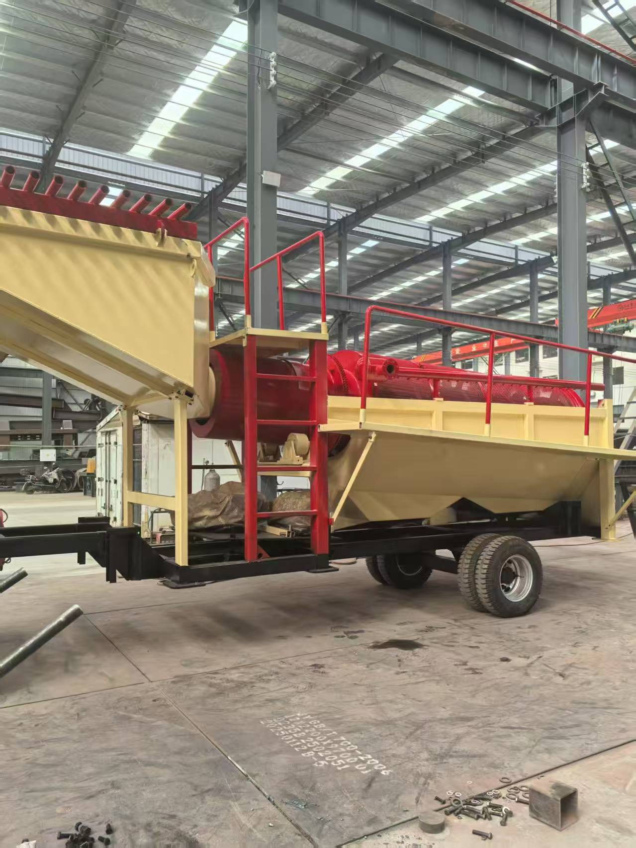 Gold mining equipment, also known as portable gold extraction equipment, is a type of machinery mainly used for sorting placer gold ore. As a mobile gold mining device, it can be fed manually or by a loader into the hopper. The materials are then screened by a trommel screen or a washing drum. Large-grained waste is discharged, while the remaining materials are further concentrated by a vibrating sluice box or a fixed sluice box.